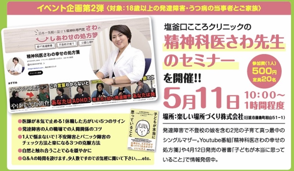 塩釜口こころクリニックの精神科医さわ先生のセミナーを開催します
