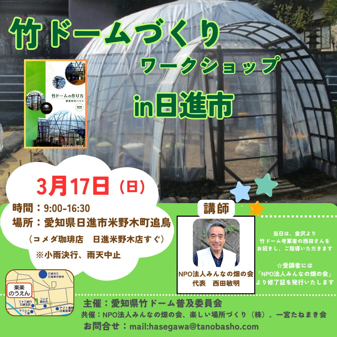 【竹ドーム普及研究会】作りを提唱いたしておりこの度愛知県の皆様のご努力で、