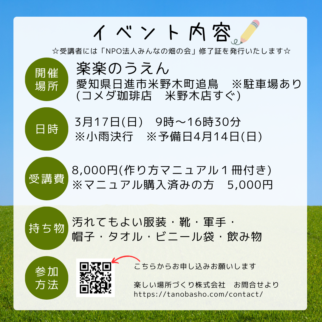 【申込み】https://tanobasho.com/contact/ 宛で申し込み下さい。