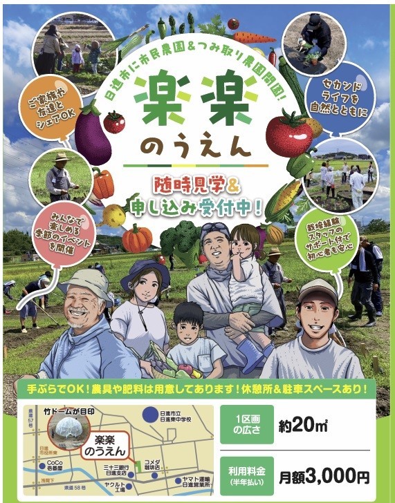 ※4月から楽楽のうえんの市民農園を借りられる方には参加費分を割引します。